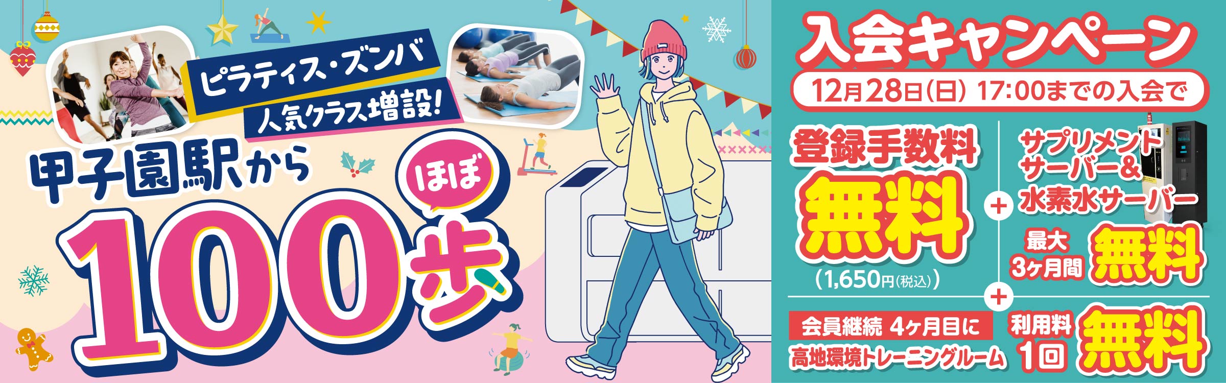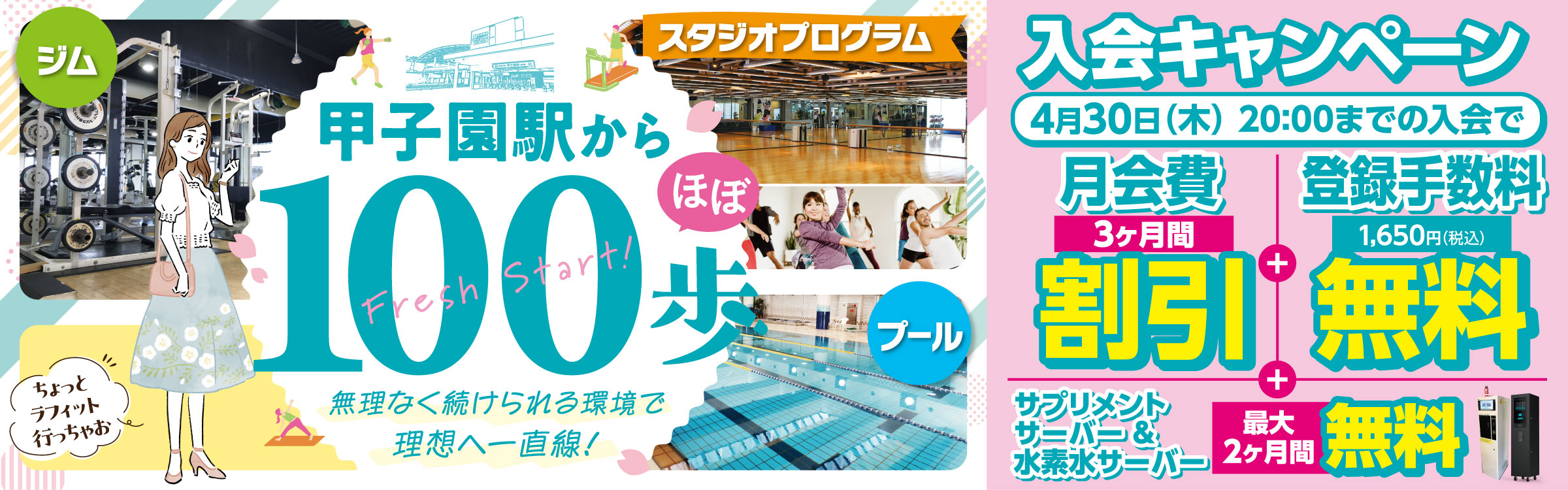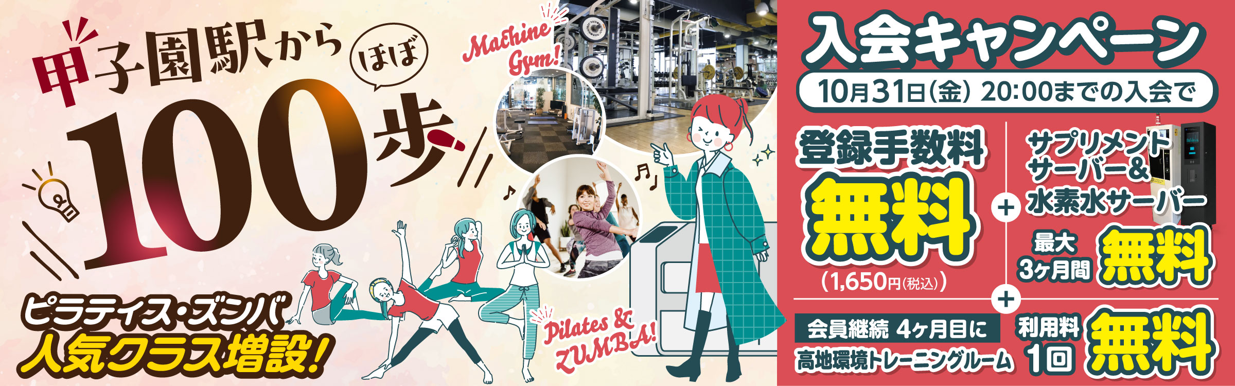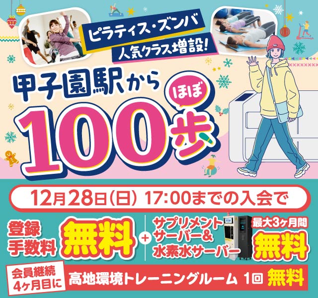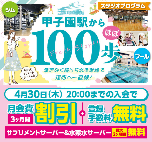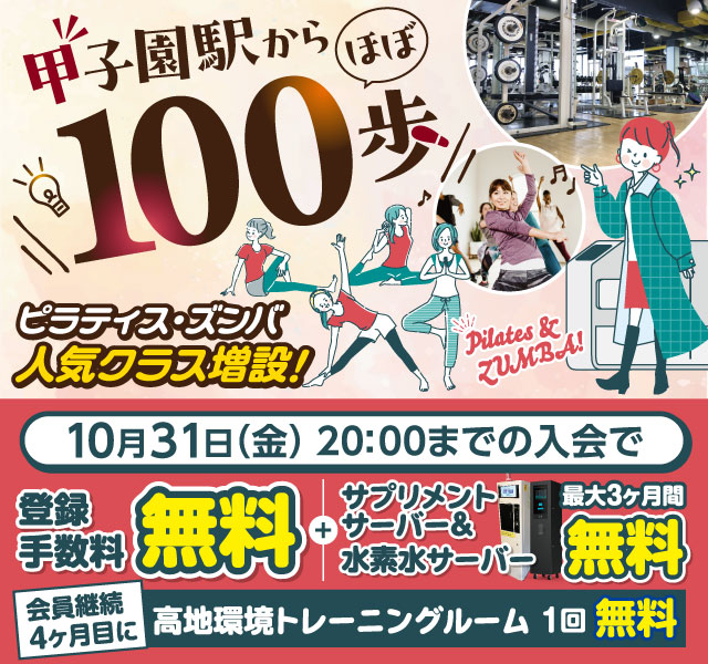 甲子園駅から徒歩1分の駅近スタジオ・ジム・プールのアットホームフィットネス。