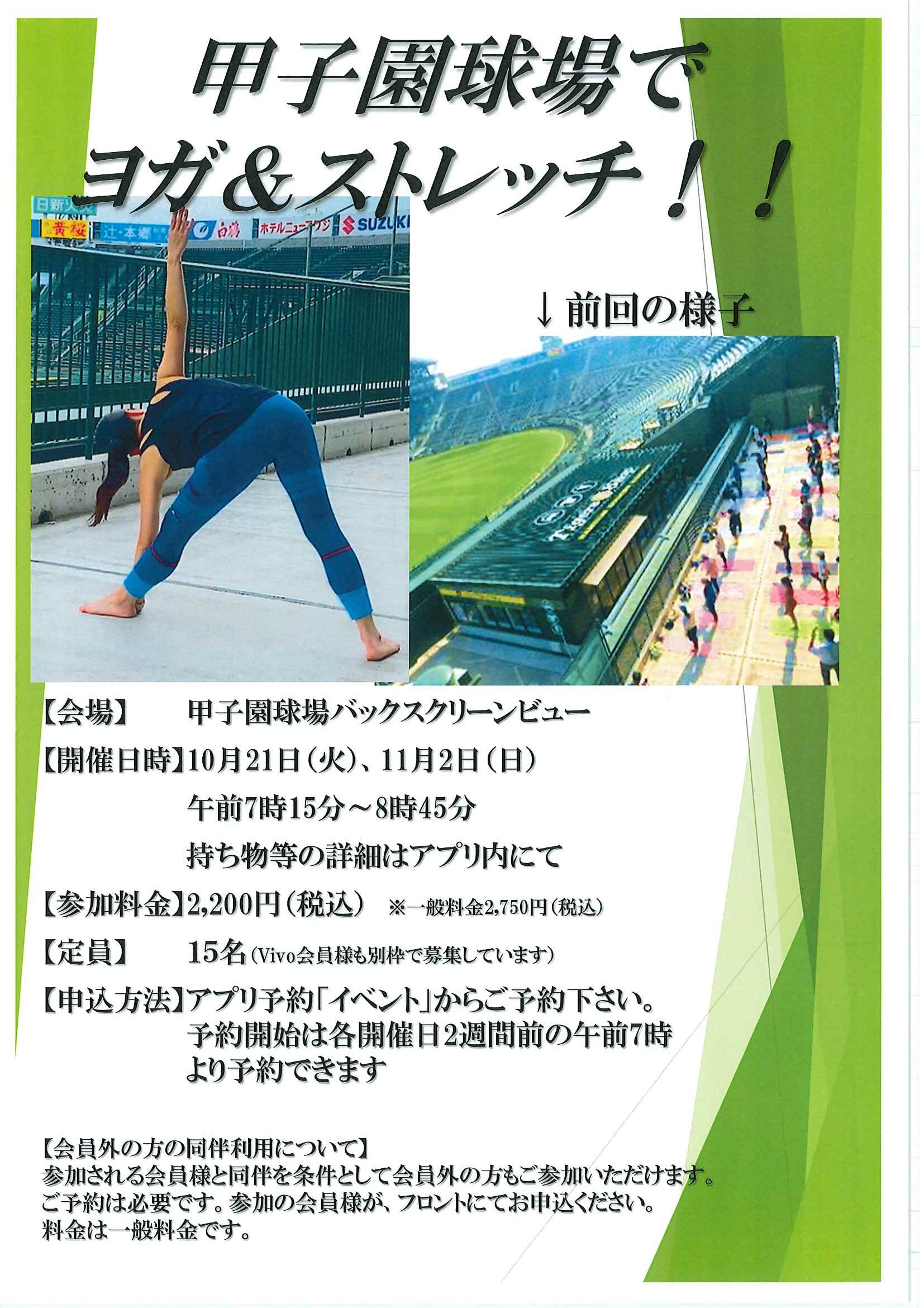 10月21日(火)、11月2日(日)に甲子園球場 バックスクリーンビューでヨガを行います!