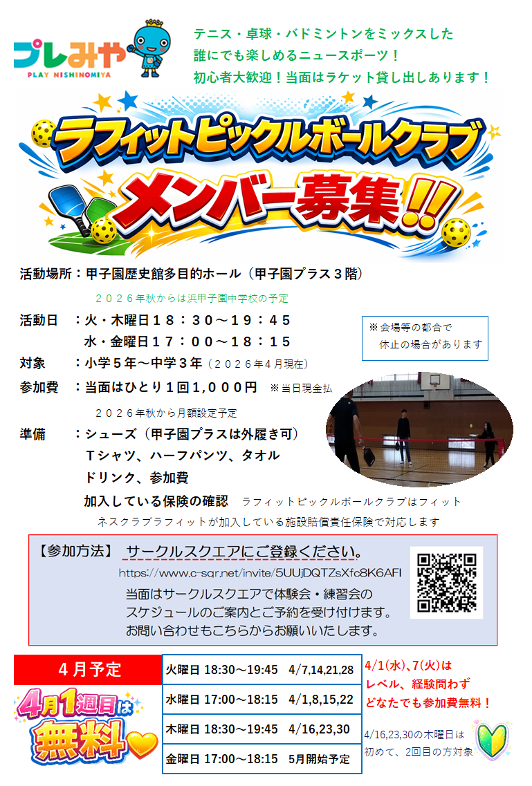 プレみやクラブでラフィットピックルボールクラブがスタートします。